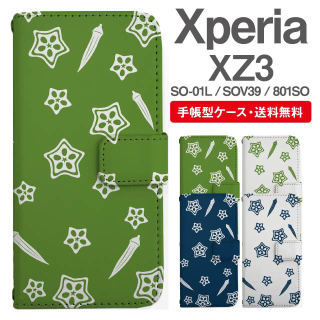 スマホケース 手帳型 Xperia XZ3 エクスペリア SO-01L SOV39 801SO 携帯ケース カバー 送料無料 オクラ 野菜柄 agesugi_ssm