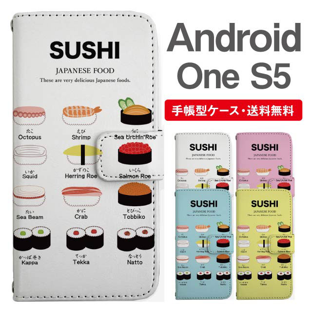 スマホケース 手帳型 Android One S5 アンドロイドワン 携帯ケース カバー 送料無料 寿司 すし agesugi_ssm