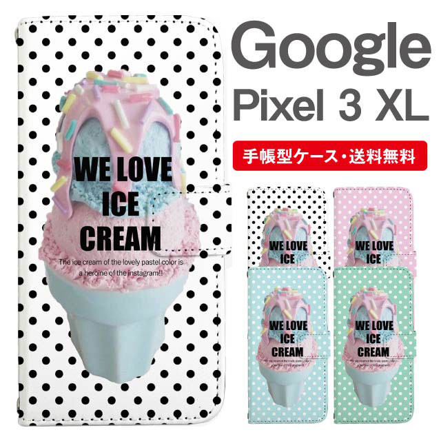 スマホケース 手帳型 Google Pixel3 XL グーグル ピクセル 携帯ケース カバー 送料無料 アイスクリーム スイーツ柄 agesugi_ssm