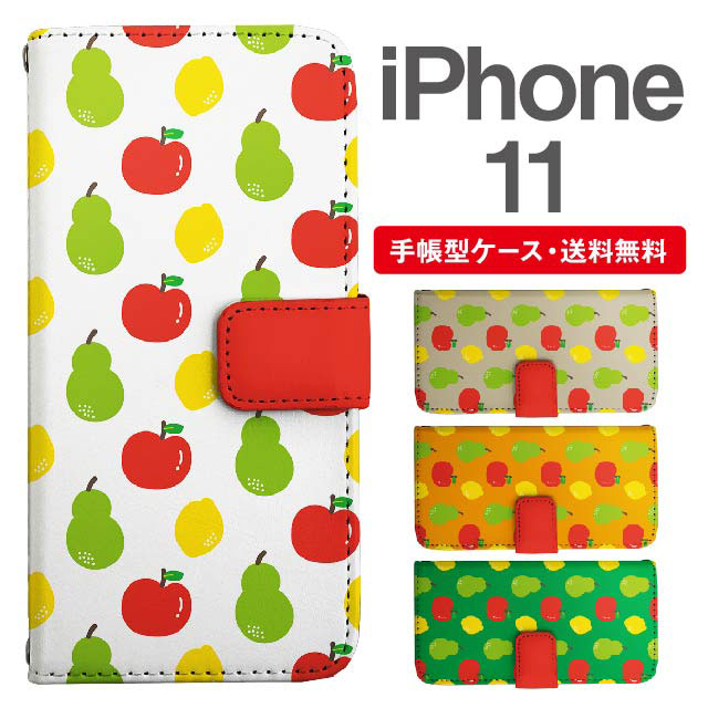 スマホケース 手帳型 iPhone 11 アイフォン 携帯ケース カバー 送料無料 フルーツ柄 りんご 洋なし レモン agesugi_ssm
