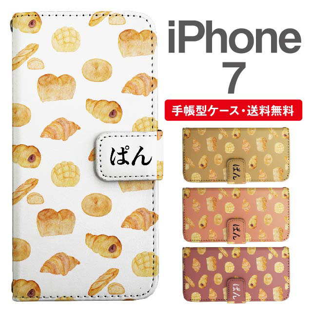 スマホケース 手帳型 iPhone7 アイフォン 携帯ケース カバー 送料無料 パン柄 agesugi_ssm