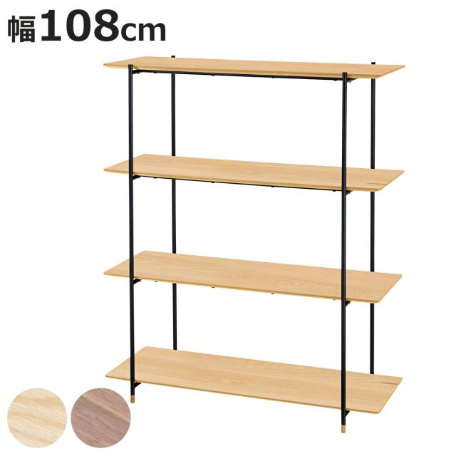 オープンラック 幅108cm 4段 木天板 ミニマルデザイン Luca ( ラック 飾り棚 ディスプレイラック 収納 収納棚 収納ラック オープンシェルフ 木目 木製 ウォルナット スチール脚 ナチュラル ブラウン 茶色 おしゃれ )