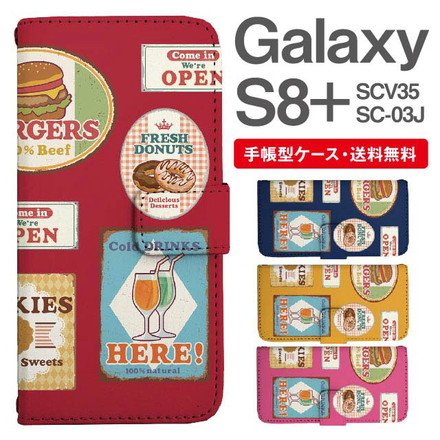 スマホケース 手帳型 Galaxy S8+ ギャラクシー SC-03J SCV35 携帯ケース カバー 送料無料 ロゴ柄 ステッカー柄 フード agesugi_ssm