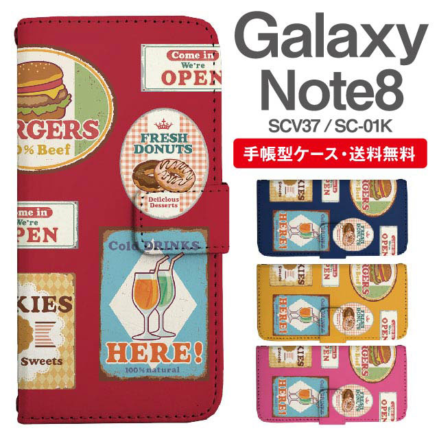 スマホケース 手帳型 Galaxy Note8 ギャラクシー SC-01K SCV37 携帯ケース カバー 送料無料 ロゴ柄 ステッカー柄 フード agesugi_ssm