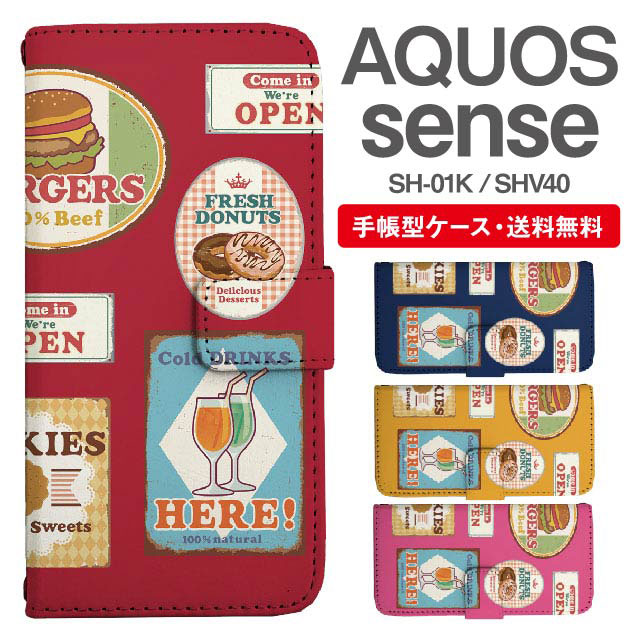 スマホケース 手帳型 AQUOS sense アクオス SH-01K SHV40 携帯ケース カバー 送料無料 ロゴ柄 ステッカー柄 フード agesugi_ssm