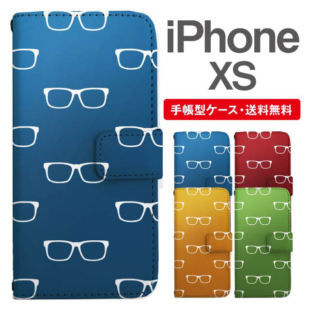 スマホケース 手帳型 iPhone XS アイフォン 携帯ケース カバー 送料無料 メガネ柄 眼鏡 agesugi_ssm