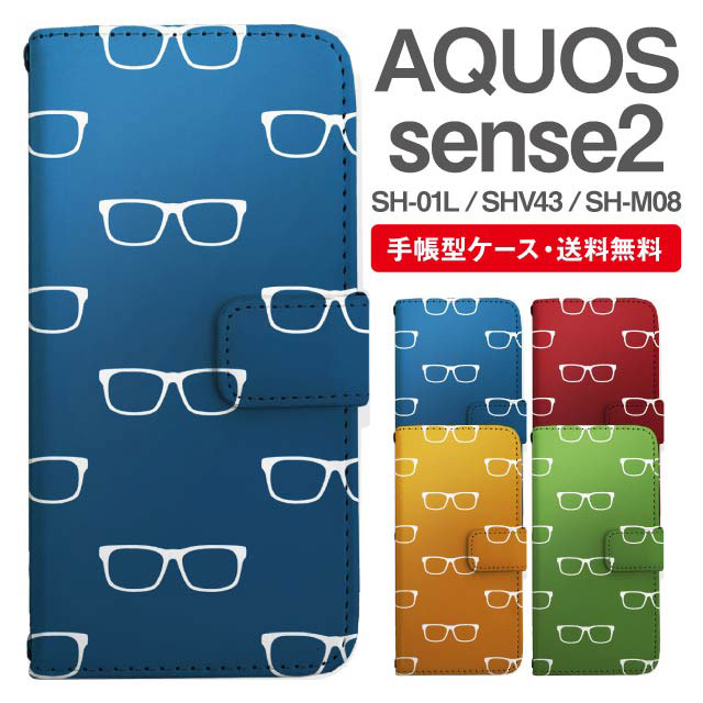 スマホケース 手帳型 AQUOS sense2 アクオス SH-01L SHV43 SH-M08 携帯ケース カバー 送料無料 メガネ柄 眼鏡 agesugi_ssm