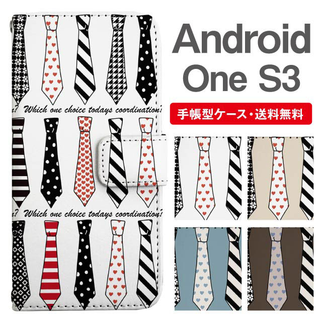 スマホケース 手帳型 Android One S3 アンドロイドワン 携帯ケース カバー 送料無料 ネクタイ柄 agesugi_ssm