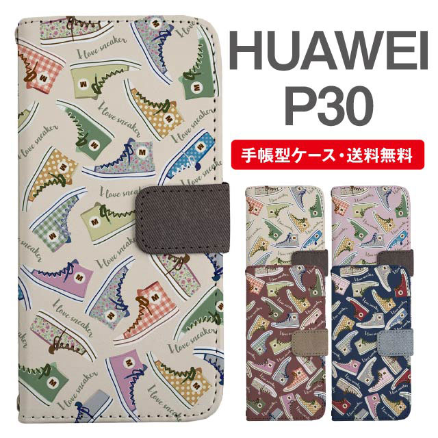 スマホケース 手帳型 HUAWEI P30 ファーウェイ 携帯ケース カバー 送料無料 スニーカー柄 agesugi_ssm