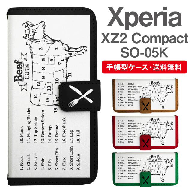 スマホケース 手帳型 Xperia XZ2 Compact エクスペリア SO-05K 携帯ケース カバー 送料無料 うし 牛肉 部位 ユニーク agesugi_ssm