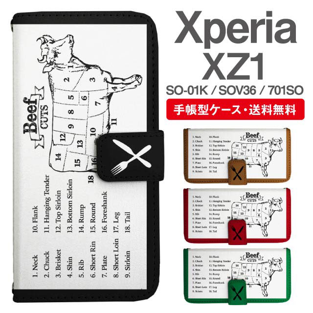 スマホケース 手帳型 Xperia XZ1 エクスペリア SO-01K SOV36 701SO 携帯ケース カバー 送料無料 うし 牛肉 部位 ユニーク agesugi_ssm