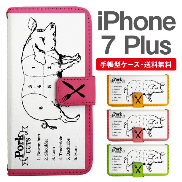 スマホケース 手帳型 iPhone7Plus アイフォン 携帯ケース カバー 送料無料 ぶた 豚肉 部位 ユニーク agesugi_ssm