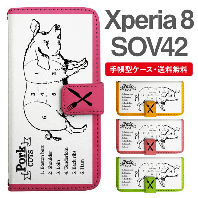 スマホケース 手帳型 Xperia 8 エクスペリア SOV42 携帯ケース カバー 送料無料 ぶた 豚肉 部位 ユニーク agesugi_ssm