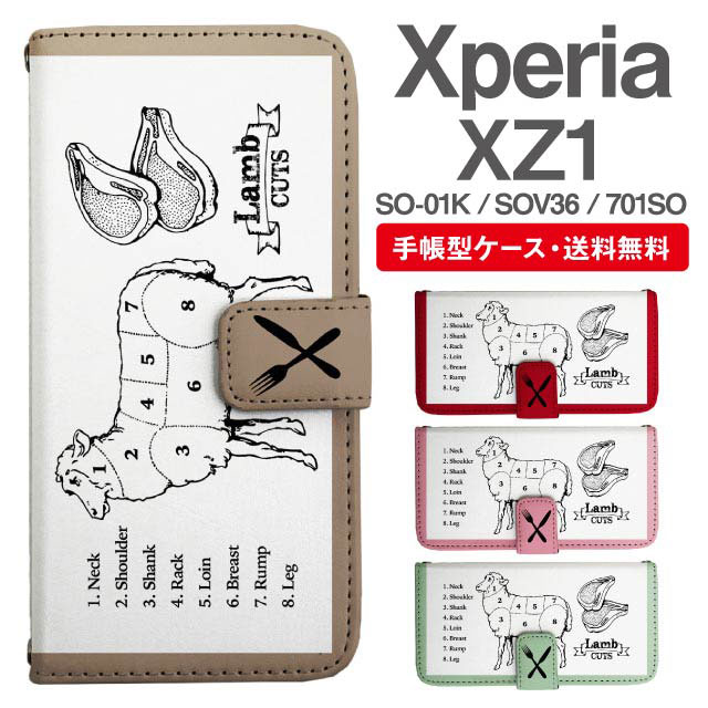 スマホケース 手帳型 Xperia XZ1 エクスペリア SO-01K SOV36 701SO 携帯ケース カバー 送料無料 ひつじ 羊 ラム肉 部位 ユニーク agesugi_ssm