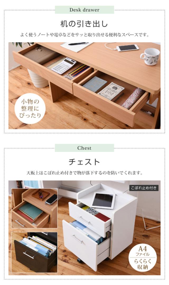 フリエル デスク&チェストセット 2点セット SGT-0125 3色対応 幅100cm ワゴン 収納 リビングデスク ワークデスク 学習デスク オフィス リビング SOHO シンプル 木製