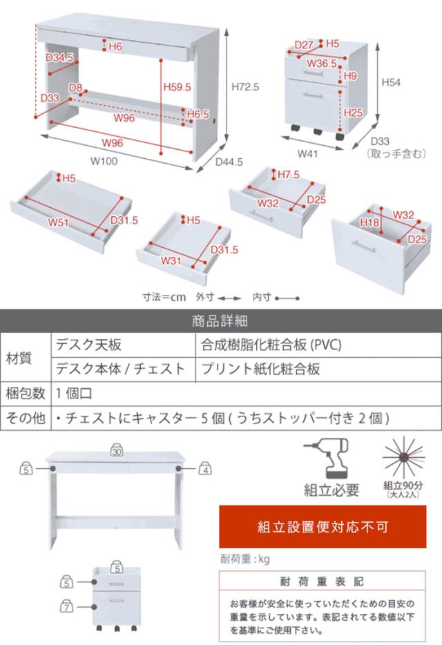 デスク:W100 × D44.5 × H72.5cm