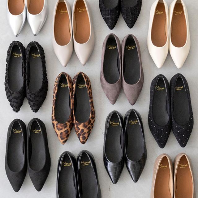 パンプス フラットシューズ ぺたんこパンプス フラットパンプス ぺたんこ靴 レディース ポインテッドトゥ ポインテッド とんがりトゥ 甲深 フラットヒール 履きやすい 痛くない 疲れない 柔らかい 歩きやすい 大きいサイズ 小さいサイズ カジュアル 旅行 お出かけ 帰省 ドライブ オフィス オフィスカジュアル ビジネス リクルート 会社 仕事 通勤 立ち仕事 お呼ばれ パーティ パーティー フォーマル 冠婚葬祭 結婚式 参観 卒園式 卒業式 二次会 入園式 入学式 発表会 披露宴 ローヒール ぺたんこ 2e ホワイト ブラック グレー ベージュ グレージュ ワニ クロコ シルバー レオパード ヒョウ柄 スタッズ 白 黒 灰 肌色 鰐柄 わに柄 ワニ柄 銀 春 夏 秋 冬 春夏 秋冬 1cmヒール 1センチヒール スムース調 合皮 PU スエード調 布 クロス 合皮 ジャガード レース ハラコ ツイード 21cm 21.5cm 22cm 22.5cm 23cm 23.5cm 24cm 24.5cm 25cm 25.5cm 26cm 26.5cm outletshoes アウトレットシューズ menue メヌエ エアスイート welleg ウェレッグ