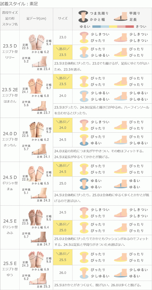 ※足の形には個人差があります。スタッフ試着感想は参考程度にお考え下さい。