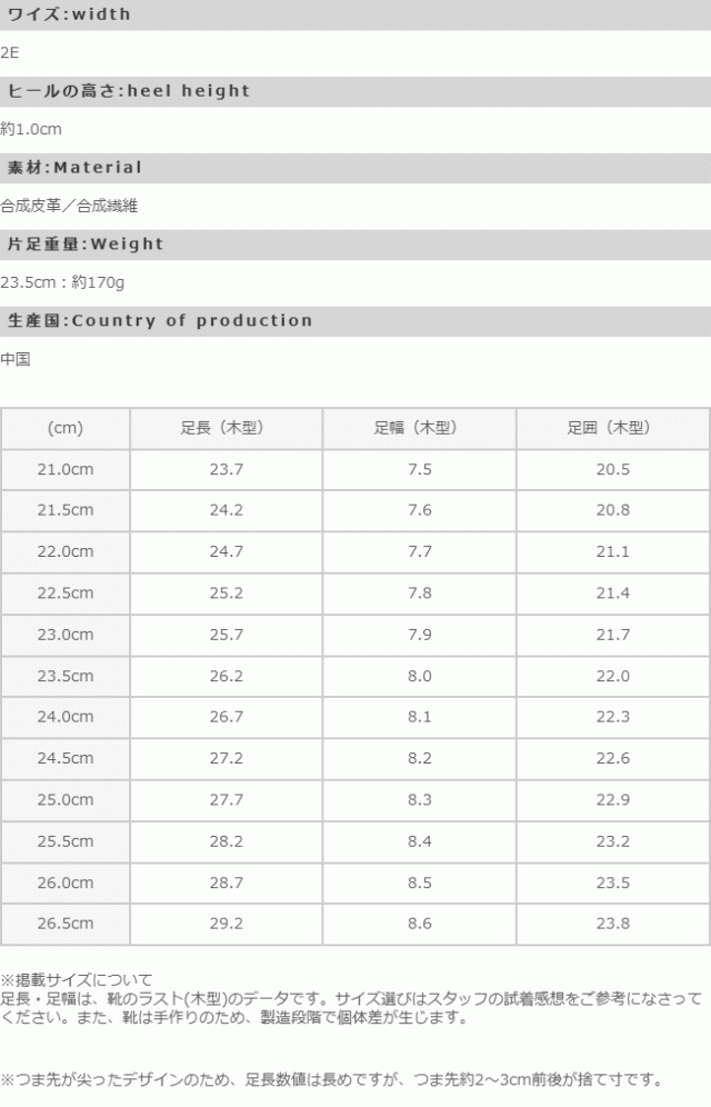 足長(木型):23.7cm/足幅(木型):7.5cm