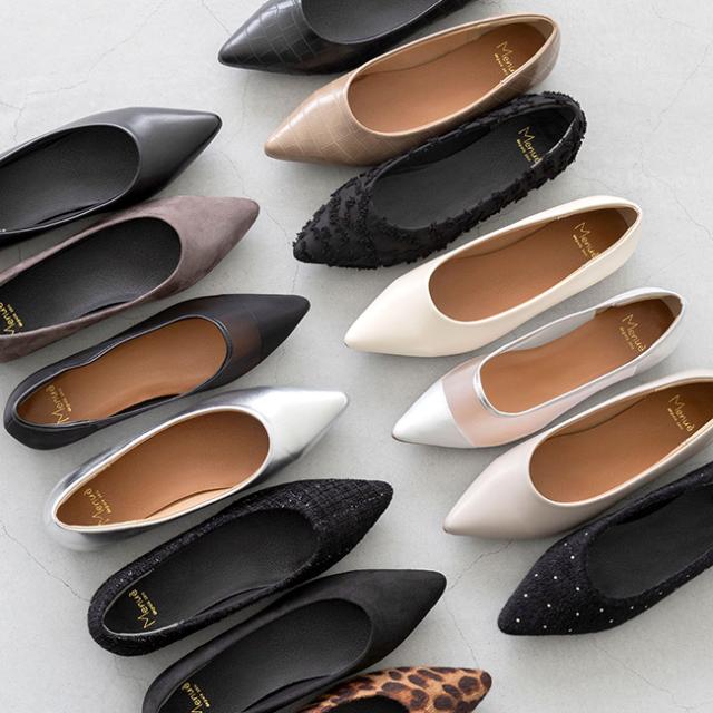 パンプス フラットシューズ ぺたんこパンプス フラットパンプス ぺたんこ靴 レディース ポインテッドトゥ ポインテッド とんがりトゥ 甲深 フラットヒール 履きやすい 痛くない 疲れない 柔らかい 歩きやすい 大きいサイズ 小さいサイズ カジュアル 旅行 お出かけ 帰省 ドライブ オフィス オフィスカジュアル ビジネス リクルート 会社 仕事 通勤 立ち仕事 お呼ばれ パーティ パーティー フォーマル 冠婚葬祭 結婚式 参観 卒園式 卒業式 二次会 入園式 入学式 発表会 披露宴 ローヒール ぺたんこ 2e ホワイト ブラック グレー ベージュ グレージュ ワニ クロコ シルバー レオパード ヒョウ柄 スタッズ 白 黒 灰 肌色 鰐柄 わに柄 ワニ柄 金 銀 春 夏 秋 冬 春夏 秋冬 1cmヒール 1センチヒール スムース調 合皮 PU スエード調 布 クロス 合皮 レース ハラコ ツイード チュール 21cm 21.5cm 22cm 22.5cm 23cm 23.5cm 24cm 24.5cm 25cm 25.5cm 26cm 26.5cm outletshoes アウトレットシューズ menue メヌエ エアスイート welleg ウェレッグ