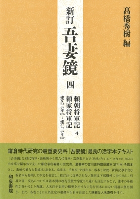 『吾妻鏡』は初代将軍・源頼朝から第六代将軍・宗尊親王まで(治承4年1180〜文永3年1266)の出来事を編年体で記した鎌倉幕府編纂の歴史書。最善本の吉川史料館所蔵本(吉川本)を底本とし、系統の異なる集成本(北条本、島津本・毛利本)や抄出本・零本と対校、新出記事を含む仮名本も参照して本文を校訂し、校訂注に反映されない異同は下部欄外に全て示し、引用文書・交名については諸本間の改行位置や字配りの違いも注記するなど、諸本の多様性が分かるよう配慮。人名注や記事の概要を示すなど先行刊本にはない利用の便を図り、また、各巻ごとに人名比定の根拠や出自を注記した詳細な人名索引を付す。