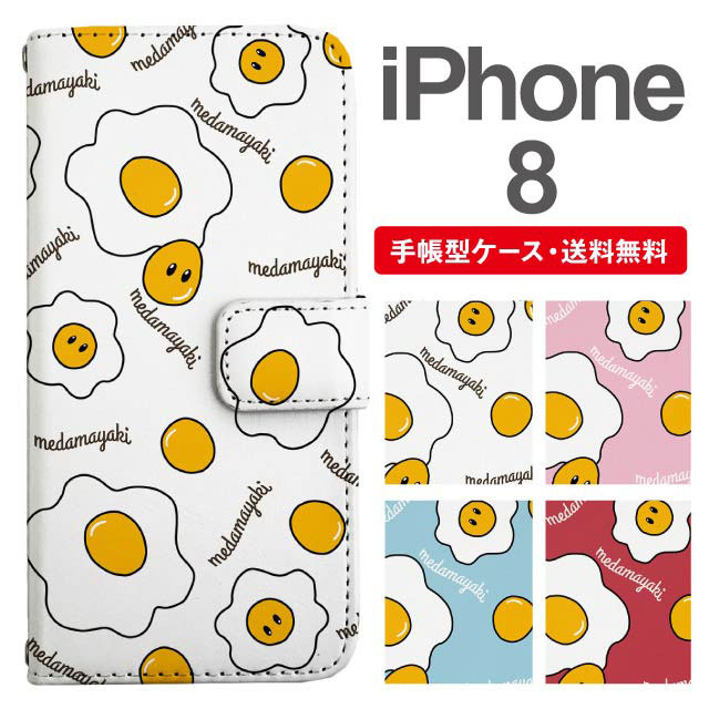 スマホケース 手帳型 iPhone8 アイフォン 携帯ケース カバー 送料無料 目玉焼き たまご イラスト agesugi_ssm