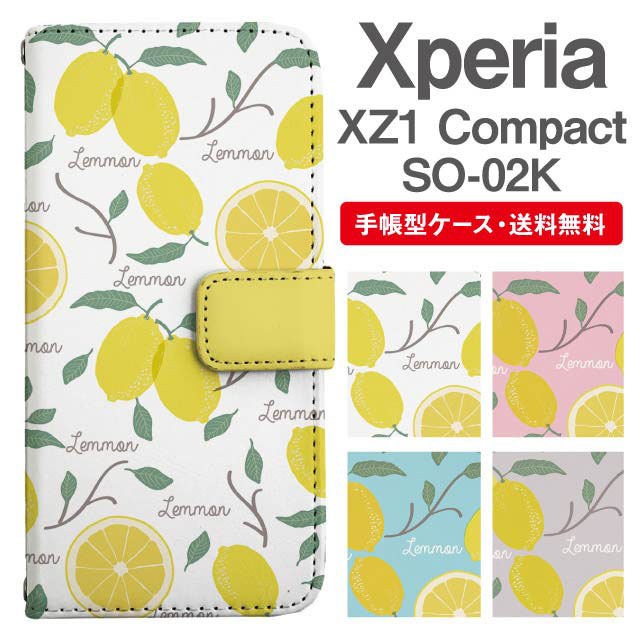 スマホケース 手帳型 Xperia XZ1 Compact エクスペリア SO-02K 携帯ケース カバー 送料無料 レモン フルーツ柄 果物 agesugi_ssm