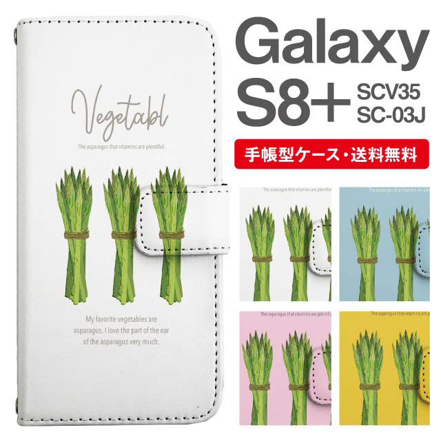 スマホケース 手帳型 Galaxy S8+ ギャラクシー SC-03J SCV35 携帯ケース カバー 送料無料 アスパラガス 野菜柄 agesugi_ssm