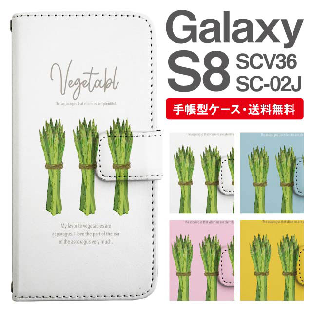スマホケース 手帳型 Galaxy S8 ギャラクシー SC-02J SCV36 携帯ケース カバー 送料無料 アスパラガス 野菜柄 agesugi_ssm