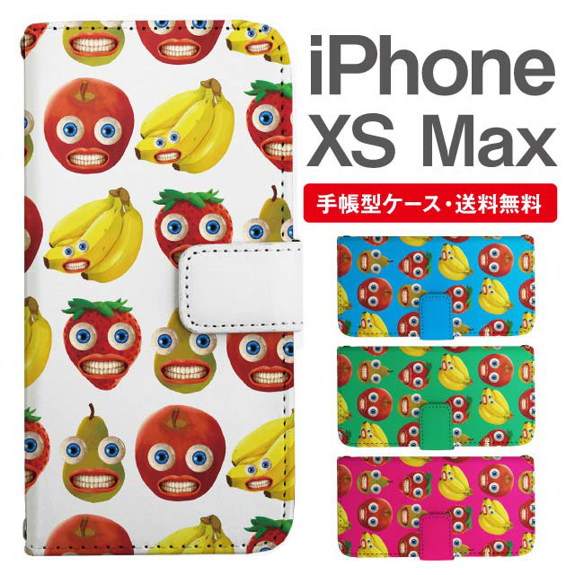 スマホケース 手帳型 iPhone XS Max アイフォン 携帯ケース カバー 送料無料 フルーツ柄 果物 ユニーク agesugi_ssm