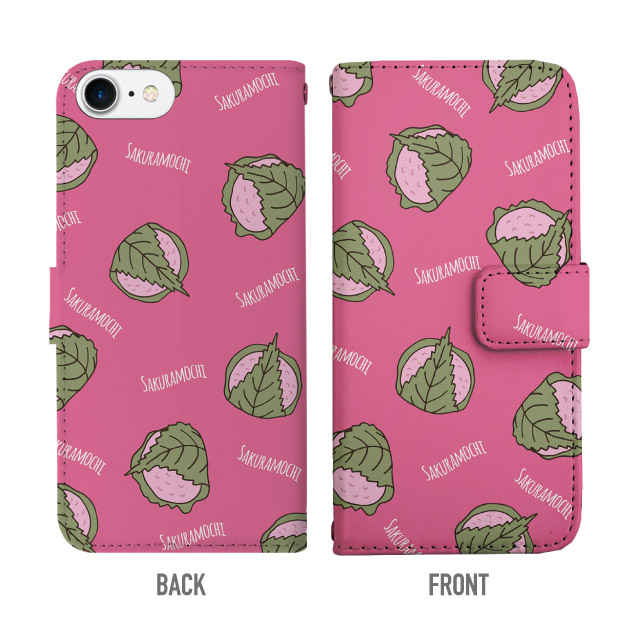 スマホケース 手帳型 iPhone8 アイフォン 携帯ケース カバー 送料無料 さくらもち 桜餅 和菓子柄 agesugi_ssm
