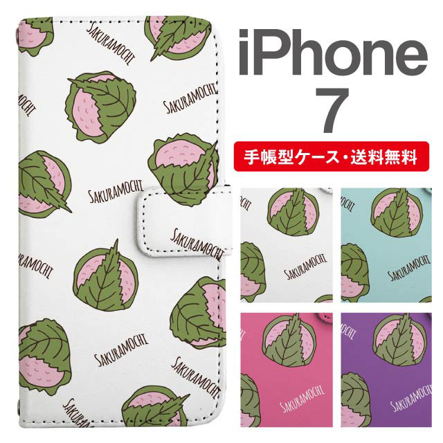 スマホケース 手帳型 iPhone7 アイフォン 携帯ケース カバー 送料無料 さくらもち 桜餅 和菓子柄 agesugi_ssm