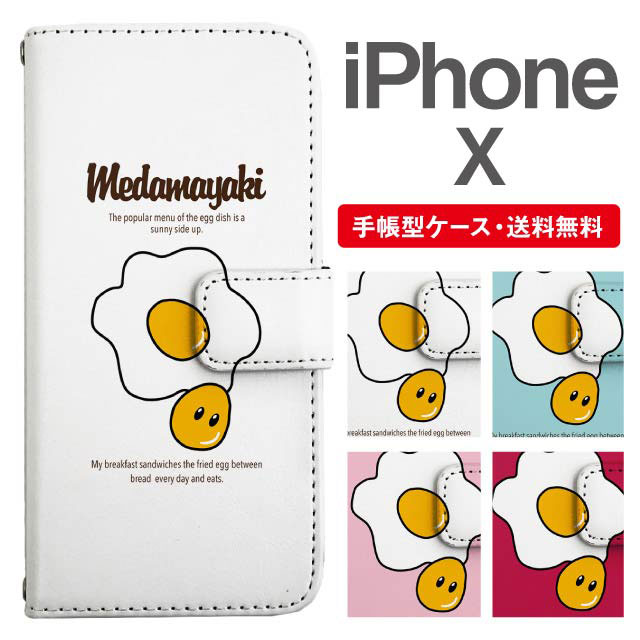 スマホケース 手帳型 iPhone X アイフォン 携帯ケース カバー 送料無料 目玉焼き たまご イラスト agesugi_ssm