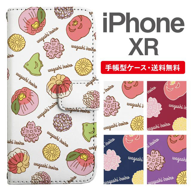 スマホケース 手帳型 iPhone XR アイフォン 携帯ケース カバー 送料無料 和菓子柄 スイーツ柄 agesugi_ssm