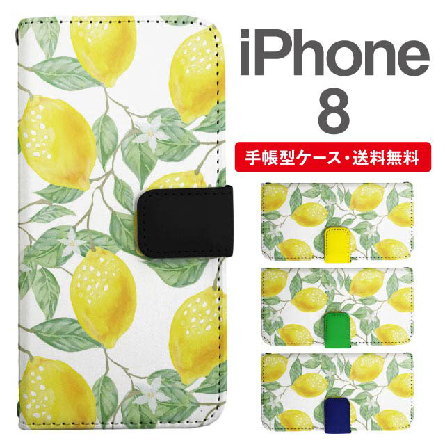 スマホケース 手帳型 iPhone8 アイフォン 携帯ケース カバー 送料無料 レモン フルーツ柄 果物 agesugi_ssm