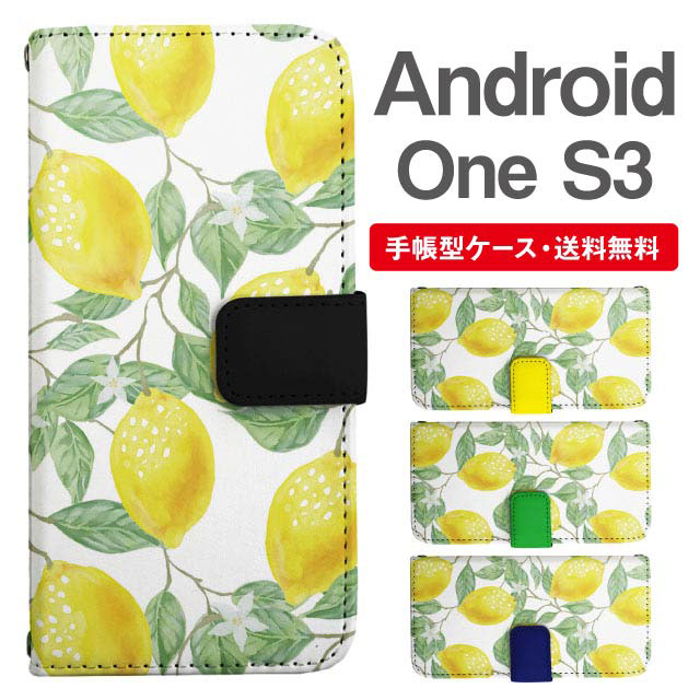スマホケース 手帳型 Android One S3 アンドロイドワン 携帯ケース カバー 送料無料 レモン フルーツ柄 果物 agesugi_ssm