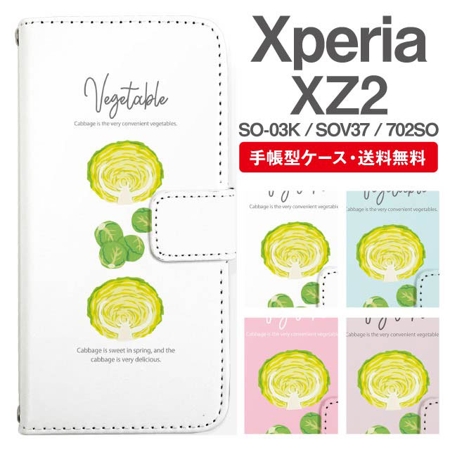 スマホケース 手帳型 Xperia XZ2 エクスペリア SO-03K SOV37 702SO 携帯ケース カバー 送料無料 キャベツ 野菜柄 agesugi_ssm
