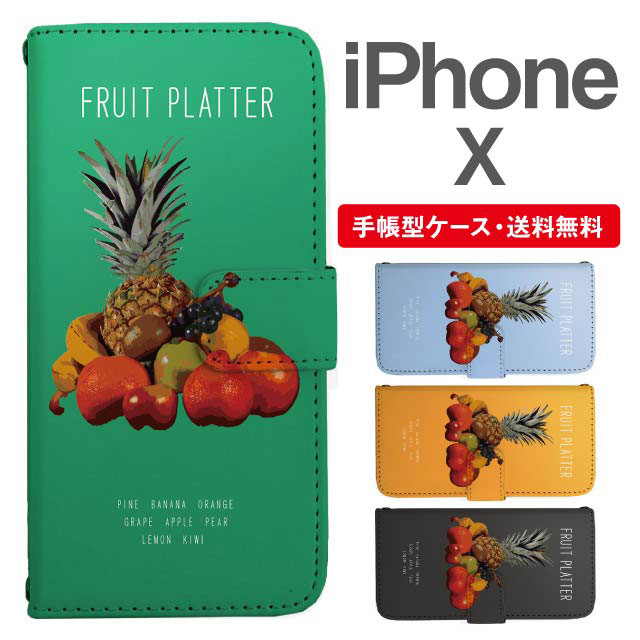 スマホケース 手帳型 iPhone X アイフォン 携帯ケース カバー 送料無料 フルーツ柄 トロピカル agesugi_ssm