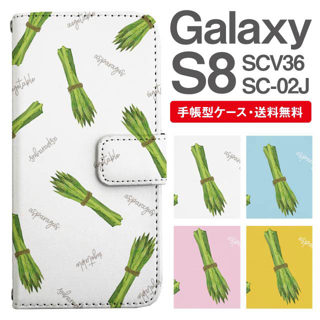 スマホケース 手帳型 Galaxy S8 ギャラクシー SC-02J SCV36 携帯ケース カバー 送料無料 アスパラガス 野菜柄 agesugi_ssm