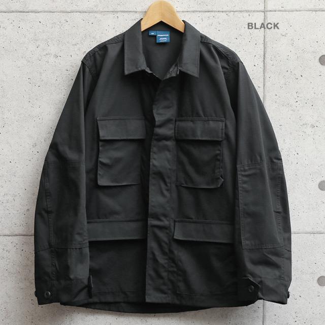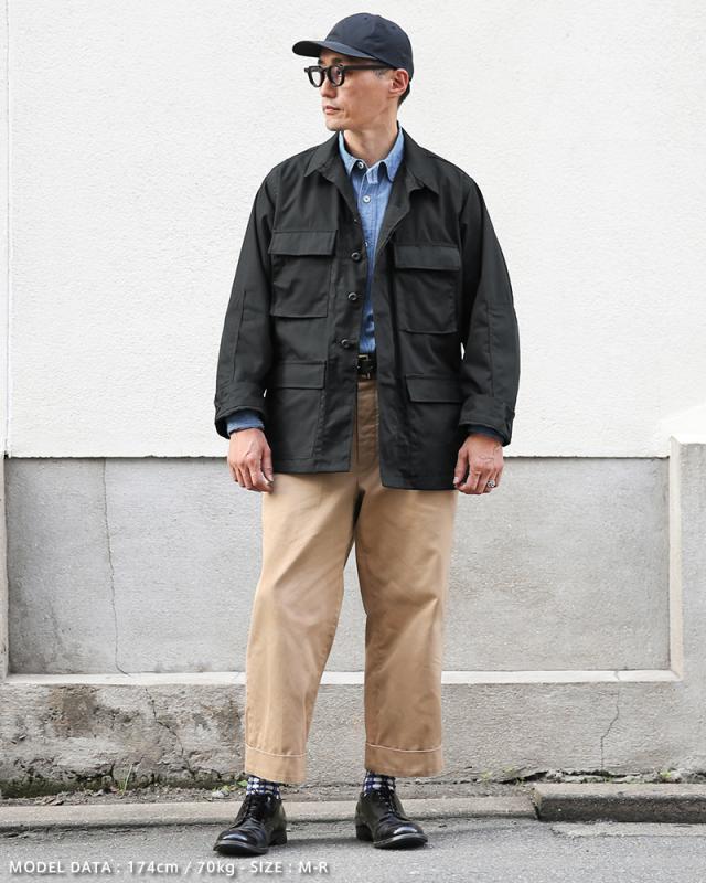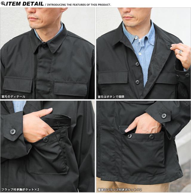 BDUとは「Battle Dress Uniform」の略で、戦闘服のことであり、BDUジャケットの特徴とも言える4つのフロントポケットは二重構造のフラップがついており、ボタンが外に露出しない仕様です。
