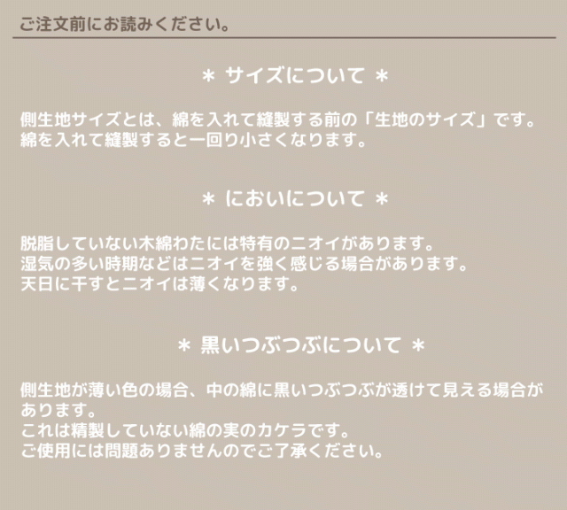 ※脱脂していない木綿わたには特有のにおいがあります。