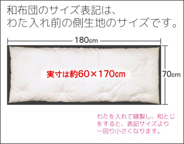 | 実寸/約68cm×165〜170cm 側生地サイズ/約70×180cm(綿を入れる前のサイズ) |
