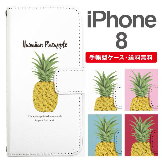 スマホケース 手帳型 iPhone8 アイフォン 携帯ケース カバー 送料無料 パイナップル パイン トロピカル agesugi_ssm