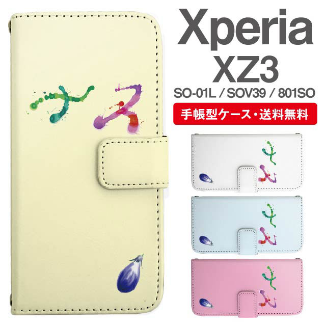 スマホケース 手帳型 Xperia XZ3 エクスペリア SO-01L SOV39 801SO 携帯ケース カバー 送料無料 ナス 茄子 野菜柄 agesugi_ssm