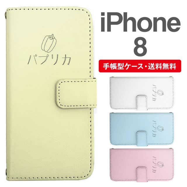 スマホケース 手帳型 iPhone8 アイフォン 携帯ケース カバー 送料無料 パプリカ 野菜柄 agesugi_ssm