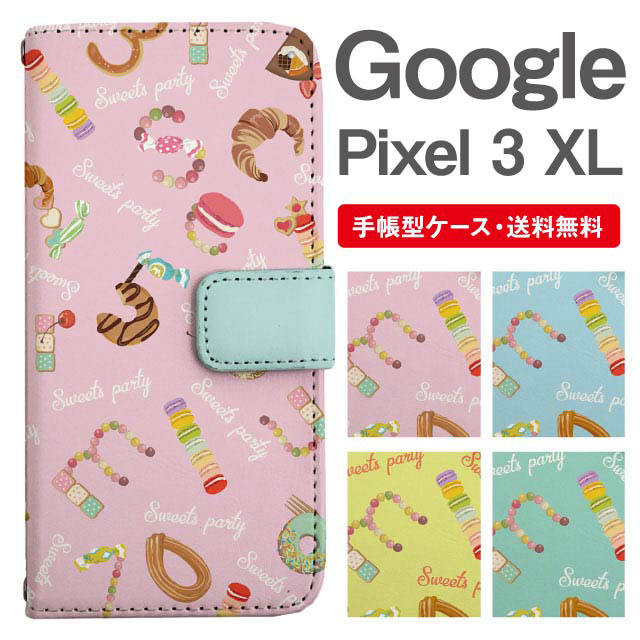 スマホケース 手帳型 Google Pixel3 XL グーグル ピクセル 携帯ケース カバー 送料無料 スイーツ柄 パン柄 フード柄 agesugi_ssm