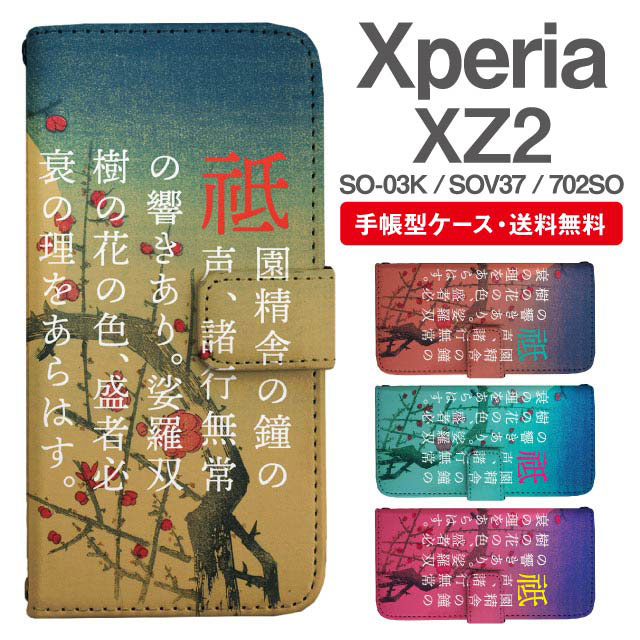 スマホケース 手帳型 Xperia XZ2 エクスペリア SO-03K SOV37 702SO 携帯ケース カバー 送料無料 和柄 源氏物語 agesugi_ssm