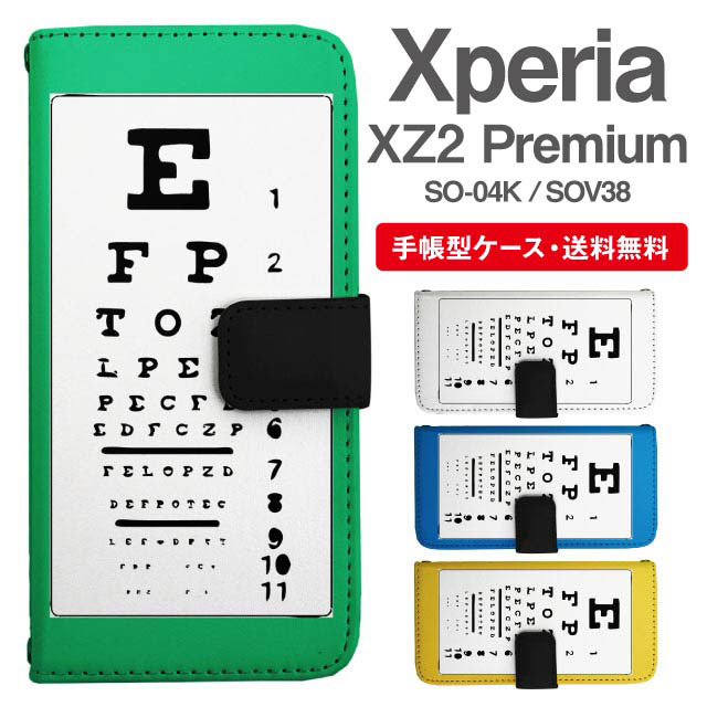 スマホケース 手帳型 Xperia XZ2 Premium エクスペリア SO-04K SOV38 携帯ケース カバー 送料無料 視力検査 スネレン指標 agesugi_ssm