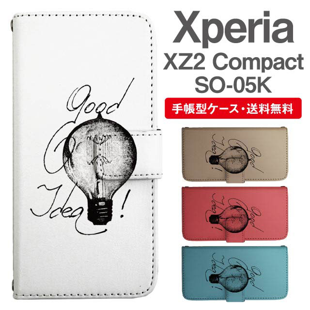 スマホケース 手帳型 Xperia XZ2 Compact エクスペリア SO-05K 携帯ケース カバー 送料無料 メッセージ レトロ 電球 agesugi_ssm