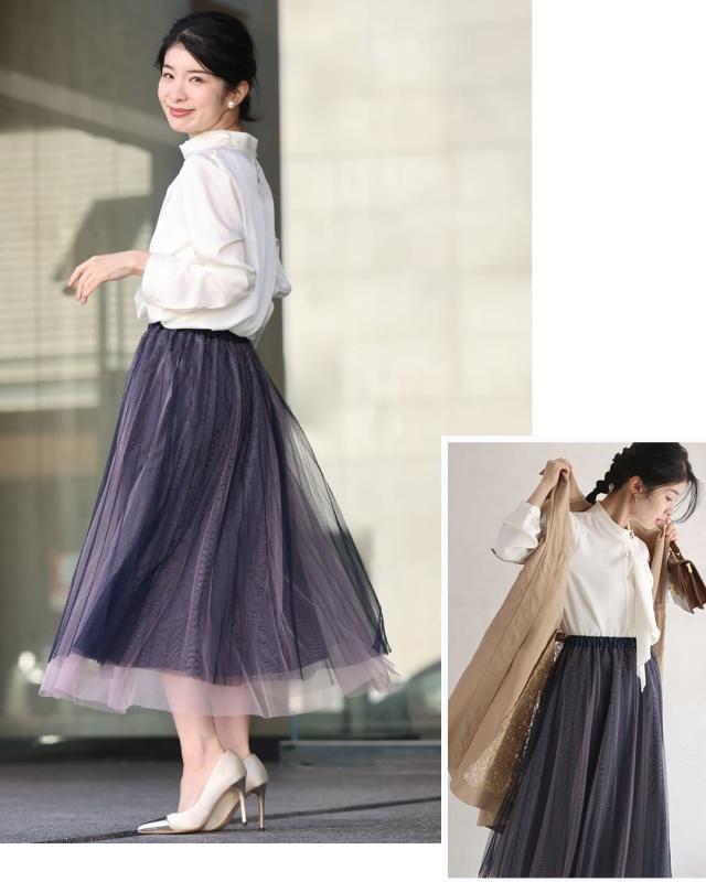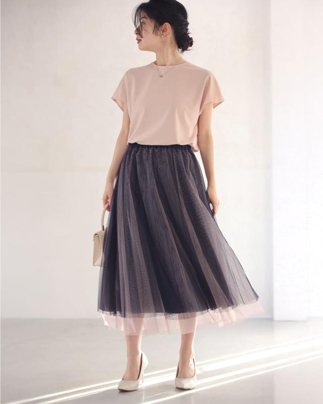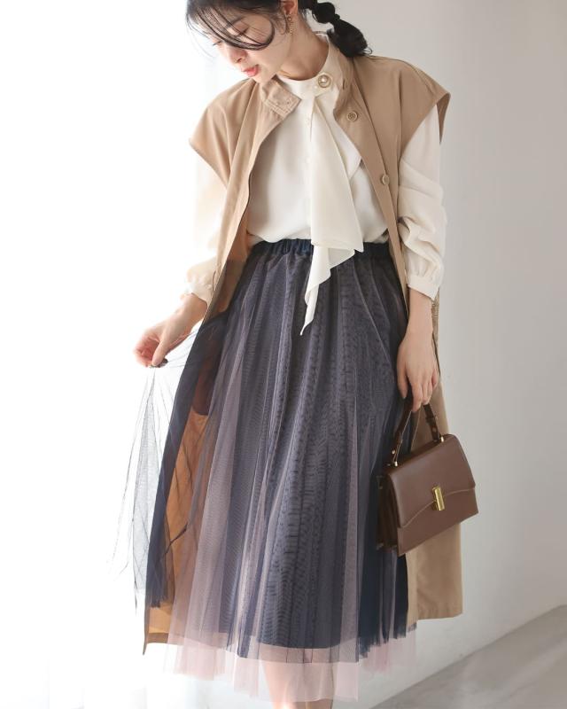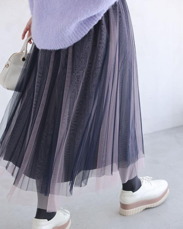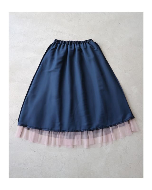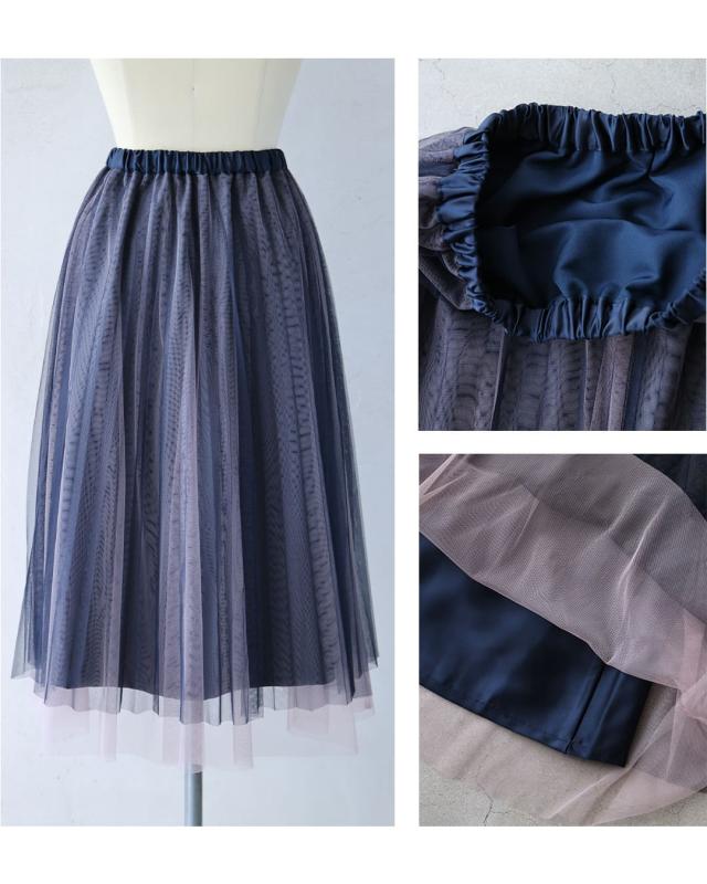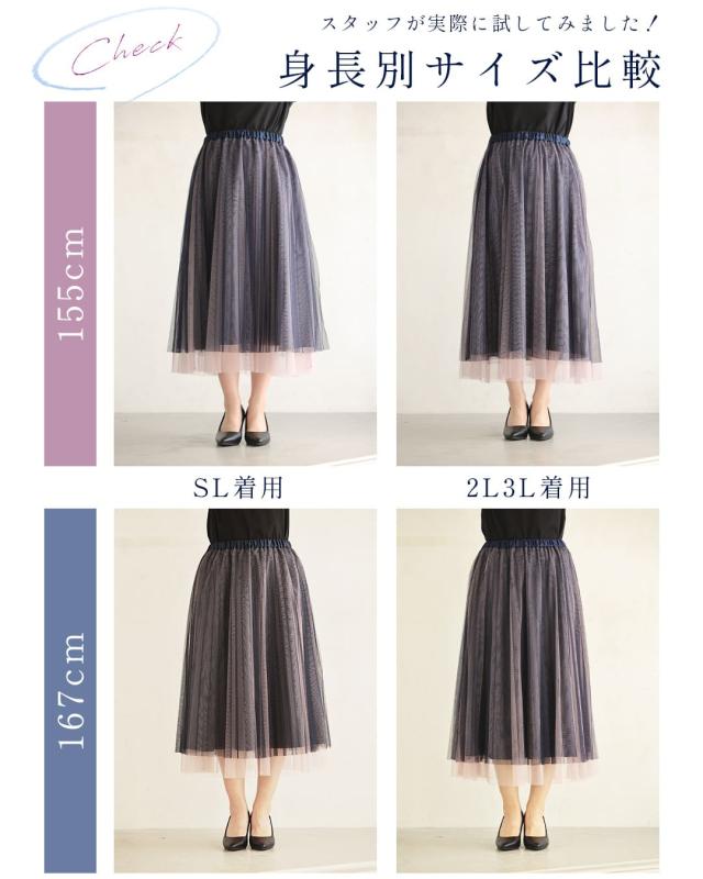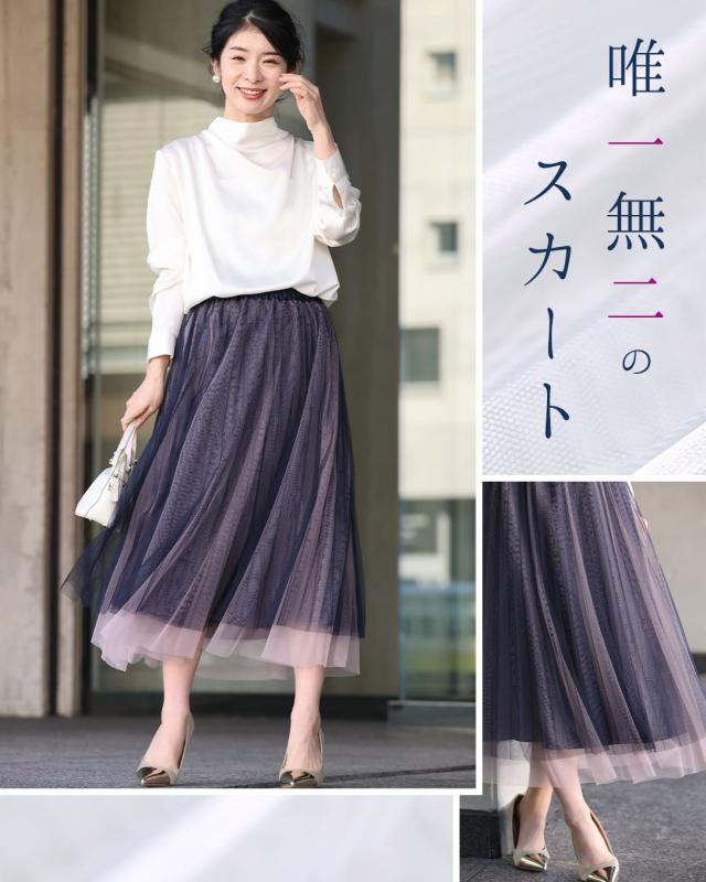 再入荷12月14日 (ネイビー)(S~L/2L~3L対応)グラデーション チュール スカート ふんわり 上品 ボリューム感 ブルー cawaii w67426 春 夏 フレアスカート スカート ミモレ ロングスカート お呼ばれ 通勤 きれいめ 春 夏 オフィス お呼ばれ 通勤 きれいめ 上品 涼しい 洗える